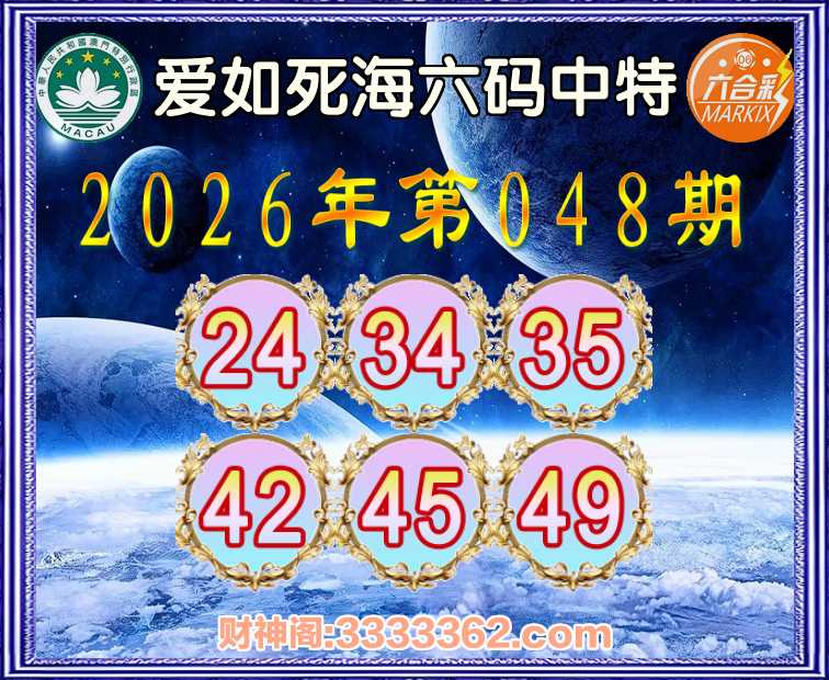 048期:【爱如死海】 🍏六码中特🍏【24.34.35.42.45.49】开:24