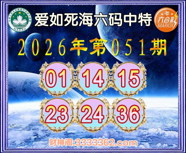 051期:【爱如死海】 🍏六码中特🍏【01.14.15.23.24.36】开:01
