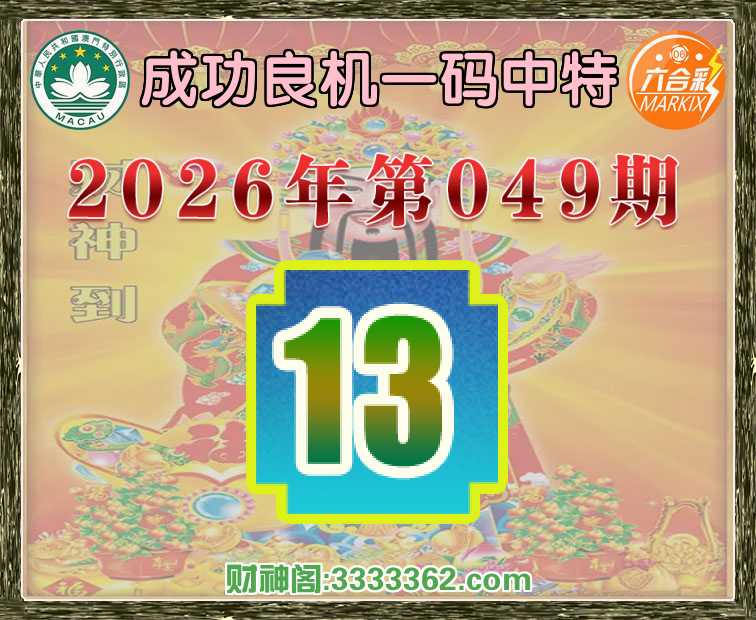 049期: ♦️『成功良机』 ♦️一码中特♦️【13】开:13