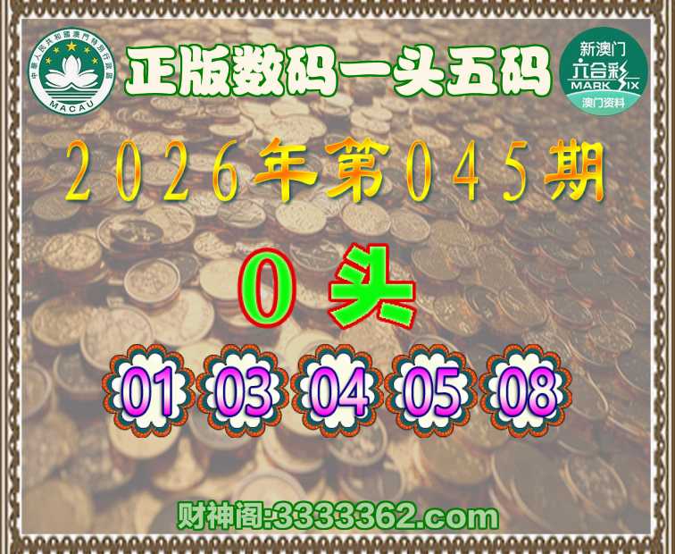 045期:『正版数码』一头五码⚽【0头主:01.03.04.05.08】开:01