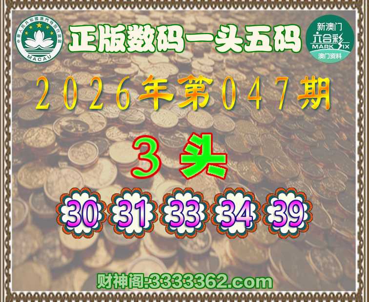 047期:『正版数码』一头五码⚽【3头主:30.31.33.34.39】开:39