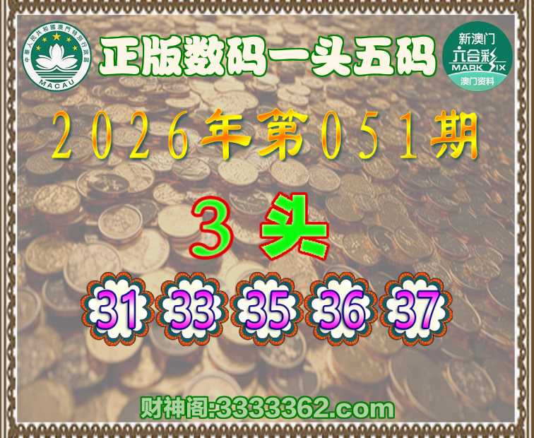 051期:『正版数码』一头五码⚽【3头主:31.33.35.36.37】开:00准