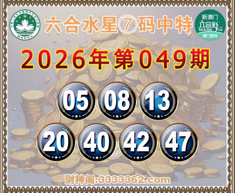049期:《六合水星》 🍟⑦码中特🍟【05.08.13.20.40.42.47】开:13