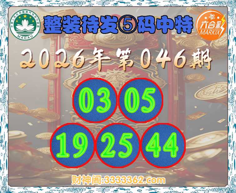 046期:〖整装待发〗 ♦️⑤码中特♦️【03.05.19.25.44】开:03