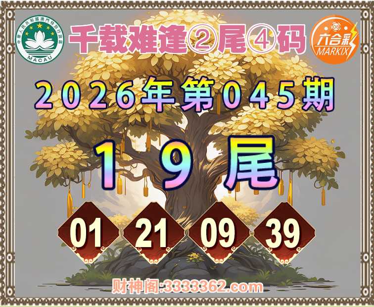 045期:【千载难逢】 ♣️②尾④码♣️【19尾主:01.21.09.39】开:01