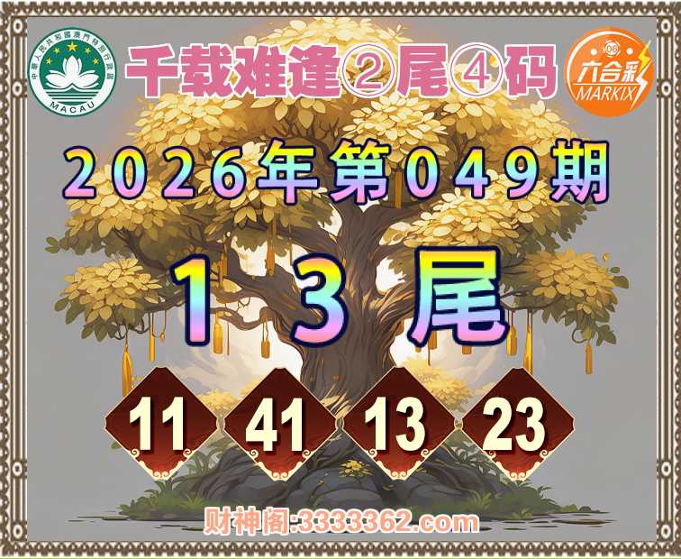 049期:【千载难逢】 ♣️②尾④码♣️【13尾主:11.41.13.23】开:13