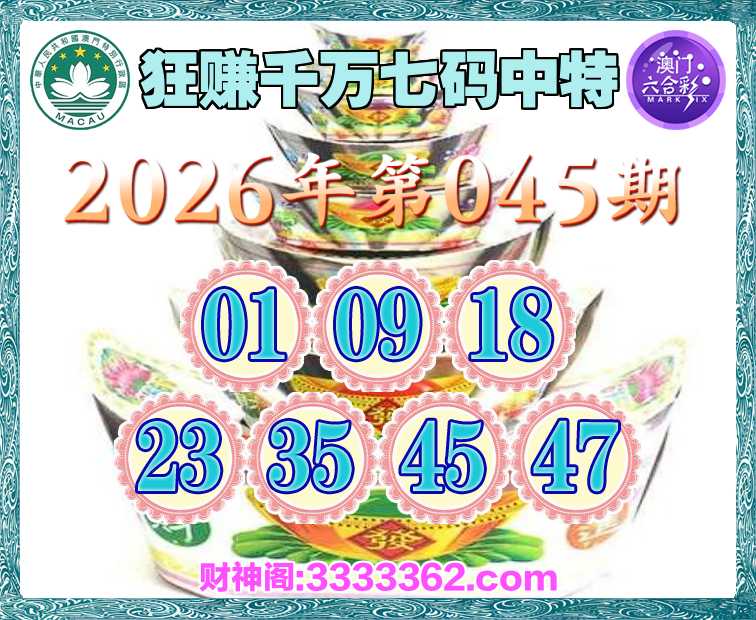 045期:【狂赚千万】 🍧七码中特🍧【01.09.18.23.35.45.47】开:01