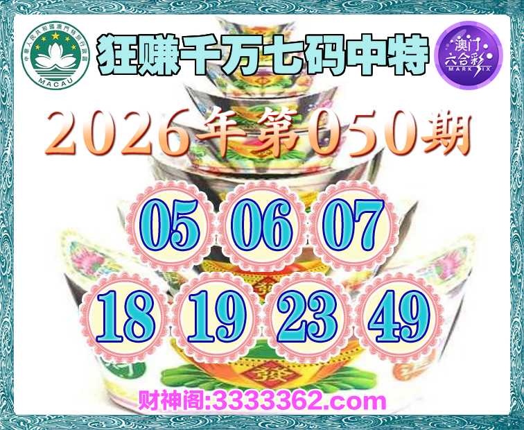 050期:【狂赚千万】 🍧七码中特🍧【05.06.07.18.19.23.49】开:23