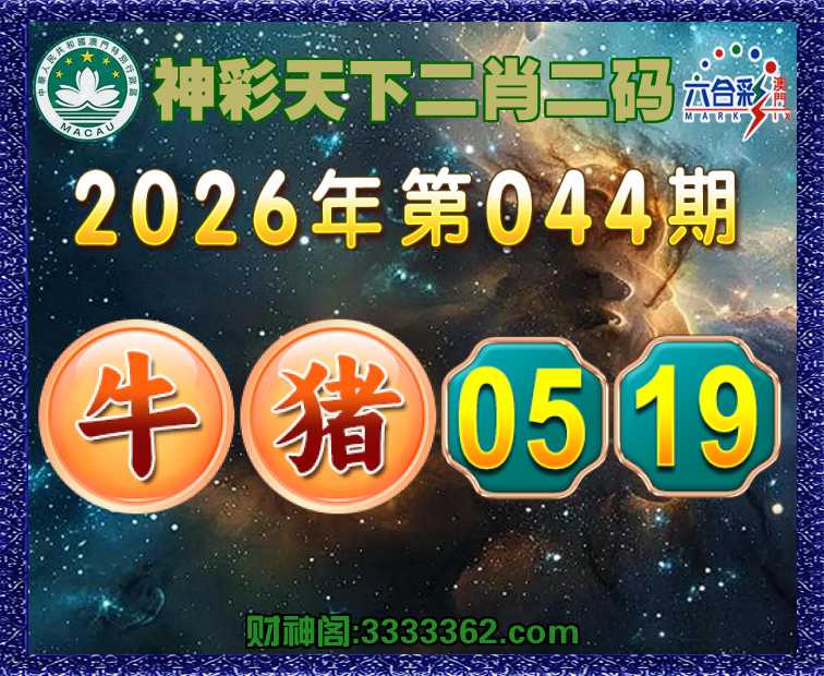 044期:《神彩天下》 🧸二肖二码🧸【牛】【05.19】开:猪19