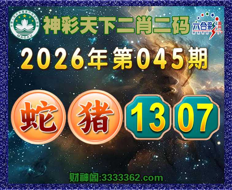 045期:《神彩天下》 🧸二肖二码🧸【猪】【13.07】开:蛇01