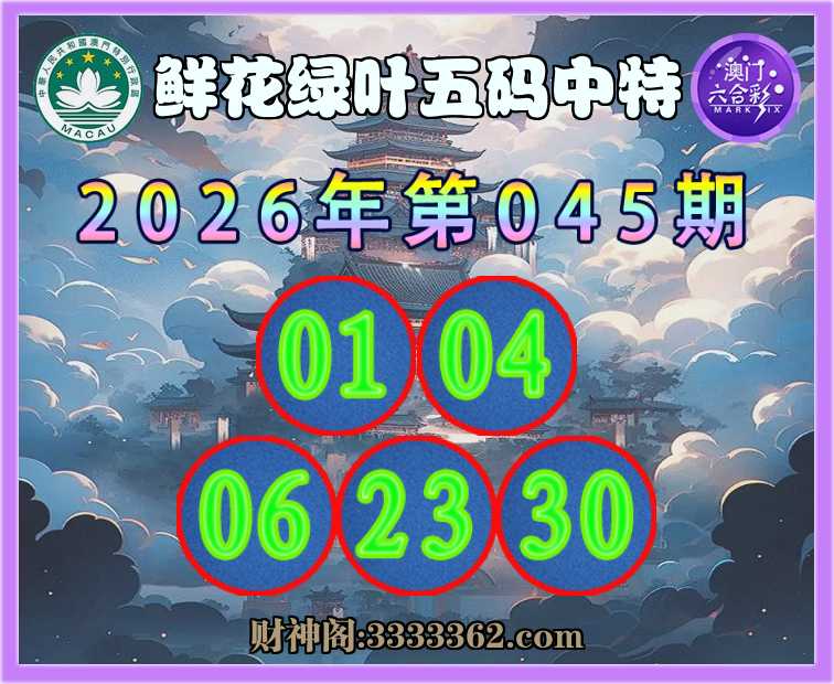 045期:《鲜花绿叶》 🤡五码中特🤡【01.04.06.23.30】开:01