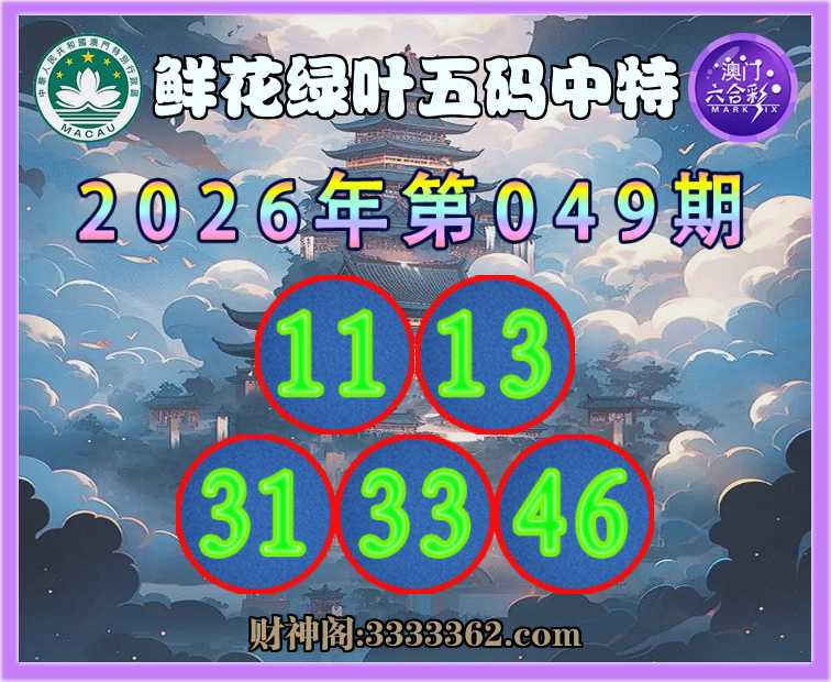 049期:《鲜花绿叶》 🤡五码中特🤡【11.13.31.33.46】开:13