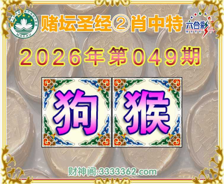 049期:『赌坛圣经』 🍕②肖中特🍕【狗.猴】开:00准