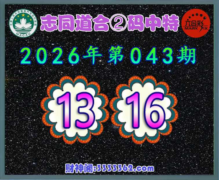 043期:《志同道合》 ♣️②码中特♣️【13.16】开:13