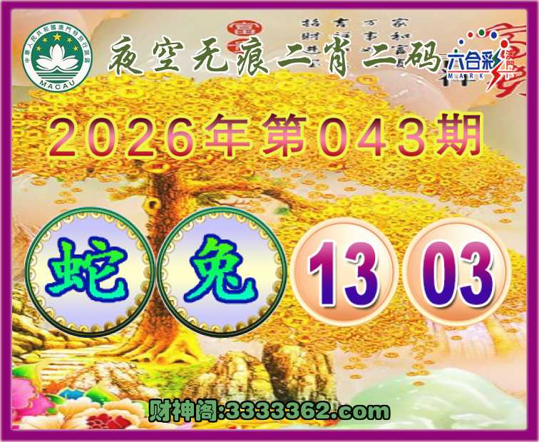 043期:『夜空无痕』 🎖️二肖二码🎖️【兔】【13.03】开:蛇13