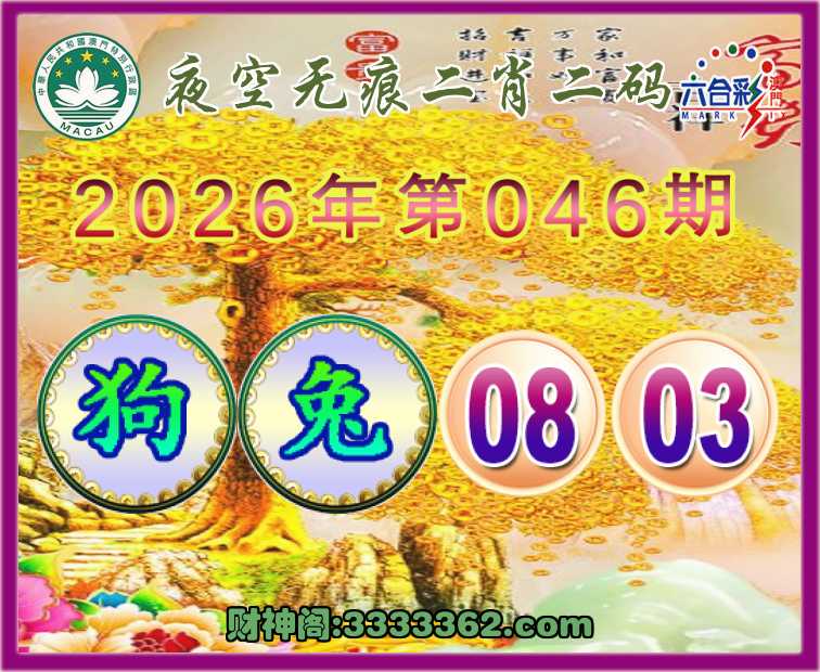 046期:『夜空无痕』 🎖️二肖二码🎖️【狗】【08.03】开:兔03