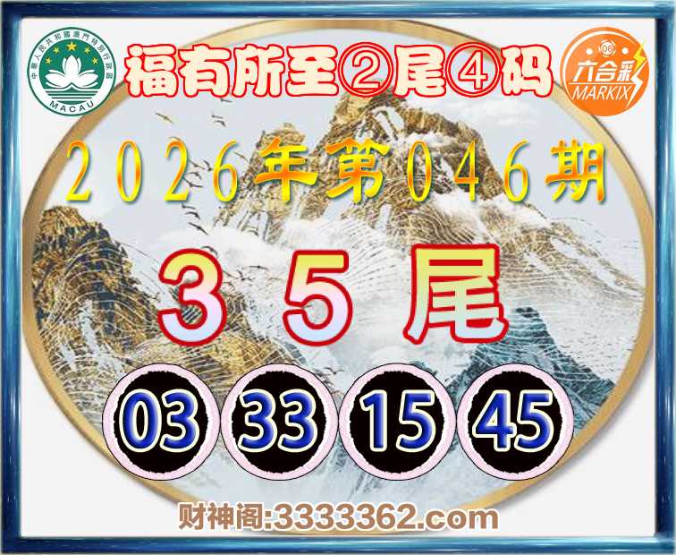 046期:【福有所至】 🎆②尾④码🎆【35尾主:03.33.15.45】开:03