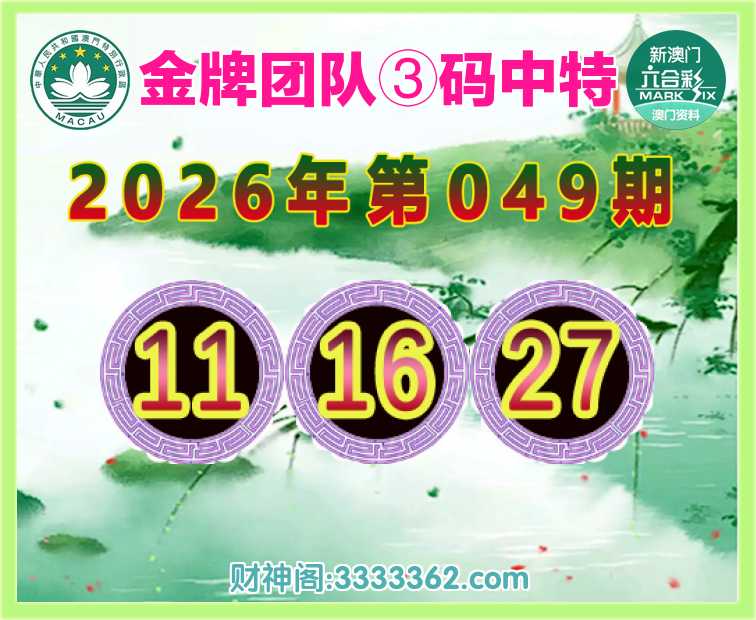 049期:【金牌团队】 🤩③码中特🤩【11.16.27】开:00准