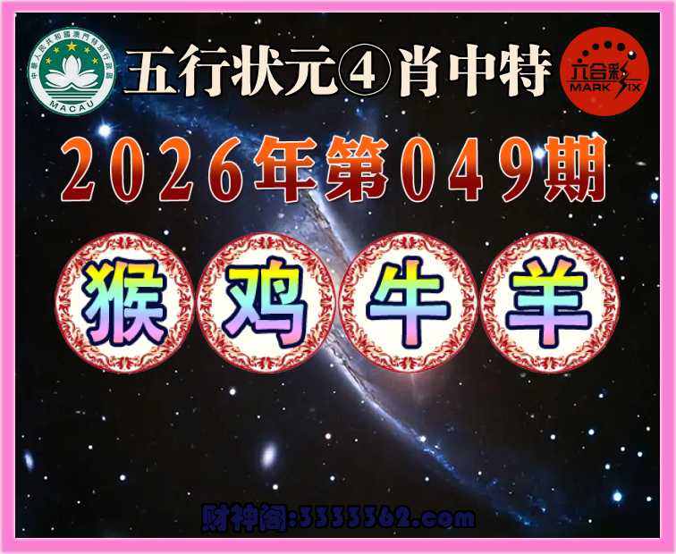 049期:【五行状元】 🏵️④肖中特🏵️【猴.鸡.牛.羊】开:00准
