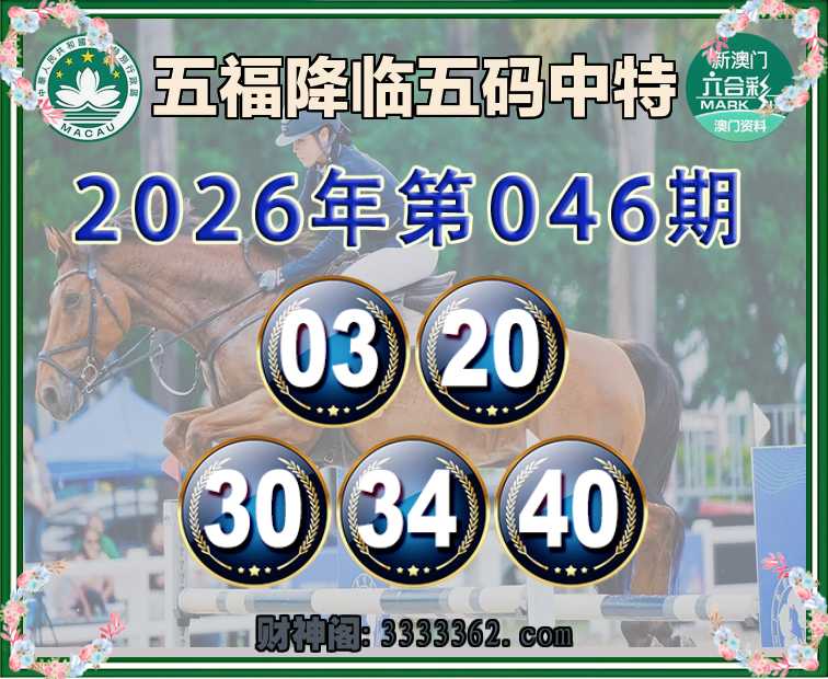 046期:『五福降临』 👛五码中特👛【03.20.30.34.40】开:03