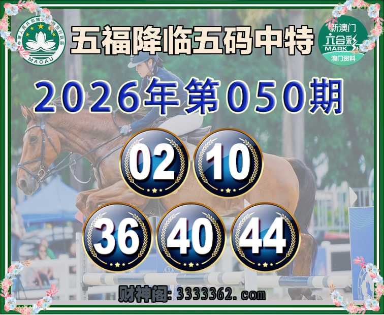 050期:『五福降临』 👛五码中特👛【02.10.36.40.44】开:00准