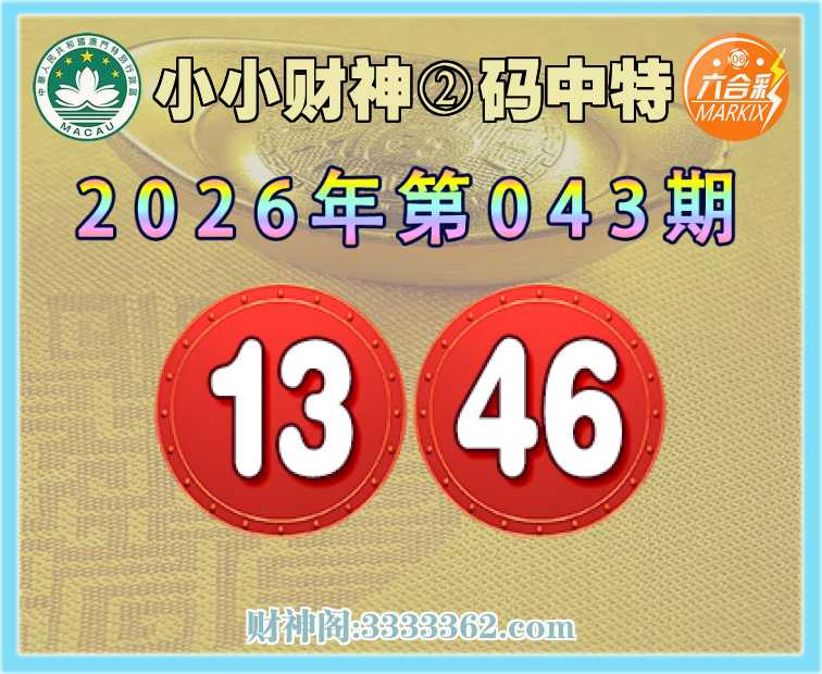 043期:【小小财神】 🏵️②码中特🏵️【13.46】开:13