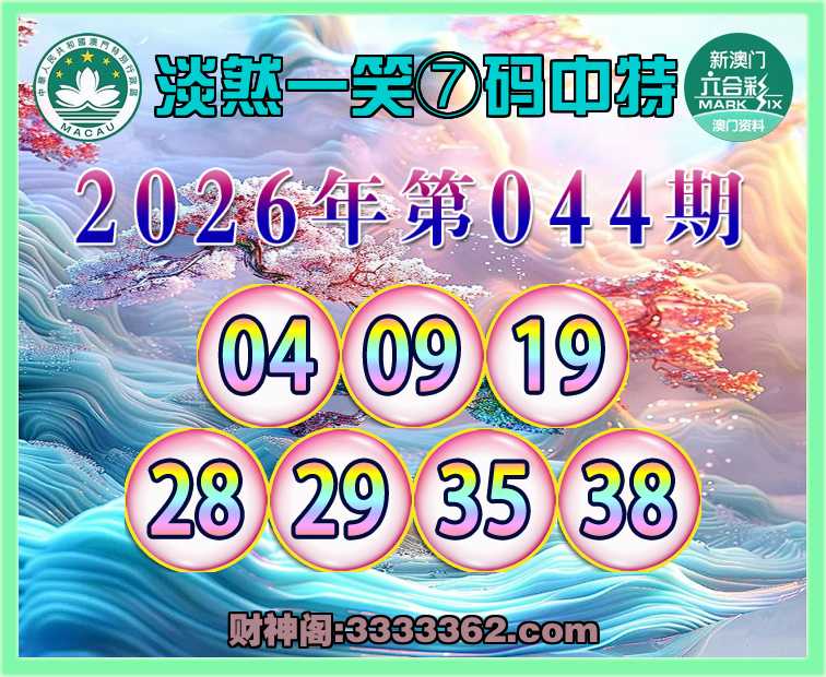 044期:『淡然一笑』 🥫⑦码中特🥫【04.09.19.28.29.35.38】开:19