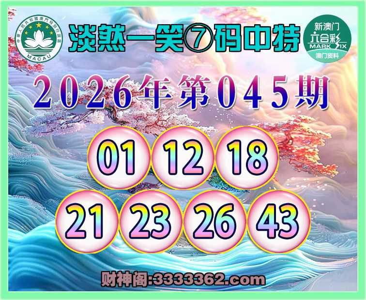 045期:『淡然一笑』 🥫⑦码中特🥫【01.12.18.21.23.26.43】开:01