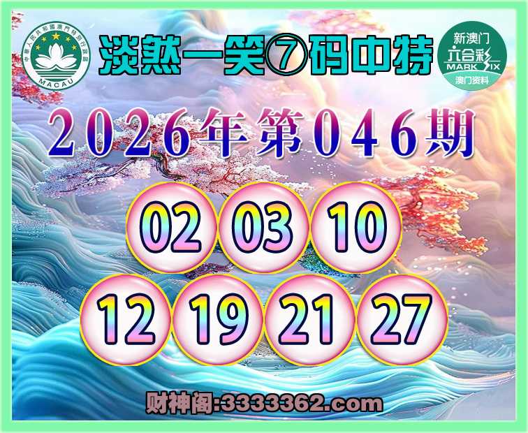 046期:『淡然一笑』 🥫⑦码中特🥫【02.03.10.12.19.21.27】开:03