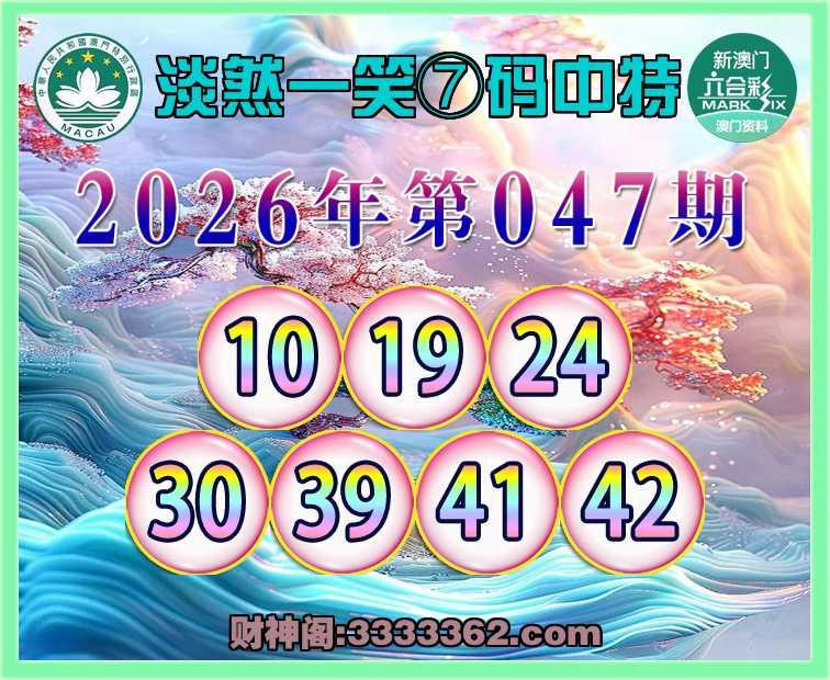 047期:『淡然一笑』 🥫⑦码中特🥫【10.19.24.30.39.41.42】开:39