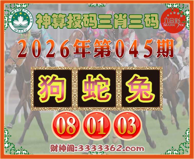 045期:《神算报码》 👘三肖三码👘【狗兔】【08.01.03】开:蛇01