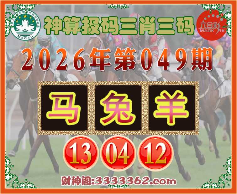 049期:《神算报码》 👘三肖三码👘【兔羊】【13.04.12】开:马13