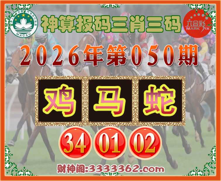 050期:《神算报码》 👘三肖三码👘【鸡马蛇】【34.01.02】开:00准