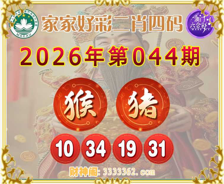 044期:【家家好彩】 👚二肖四码👚【猴】【10.34.19.31】开:猪19