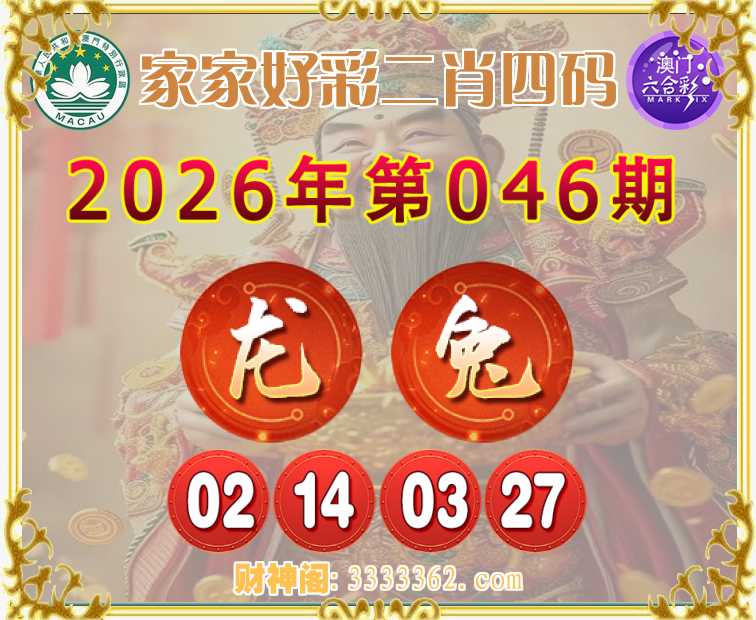 046期:【家家好彩】 👚二肖四码👚【龙】【02.14.03.27】开:兔03