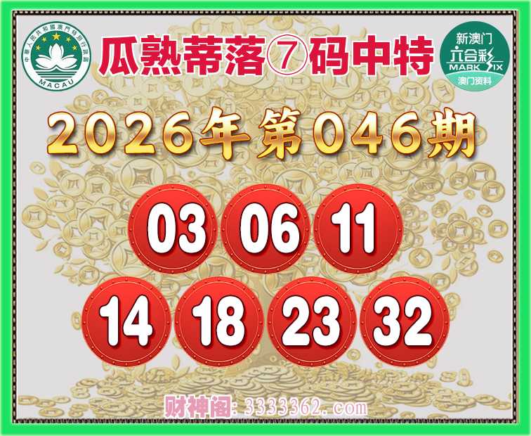 046期:《瓜熟蒂落》 🏵️⑦码中特🏵️【03.06.11.14.18.23.32】开:03