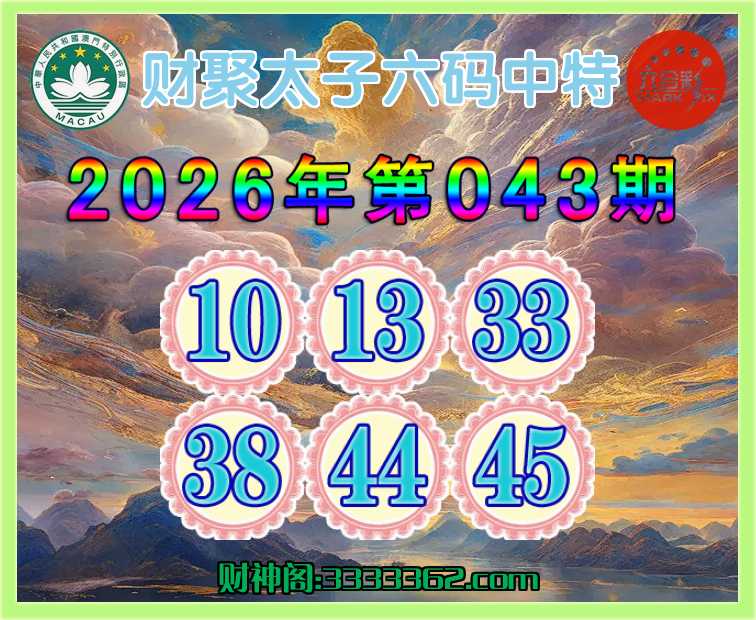 043期:『财聚太子』 🧩六码中特🧩【10.13.33.38.44.45】开:13