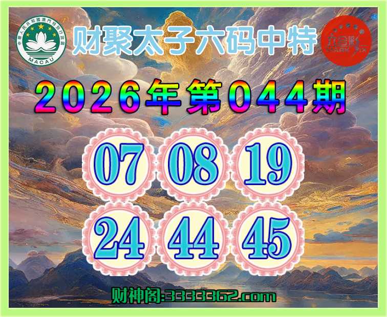 044期:『财聚太子』 🧩六码中特🧩【07.08.19.24.44.45】开:19