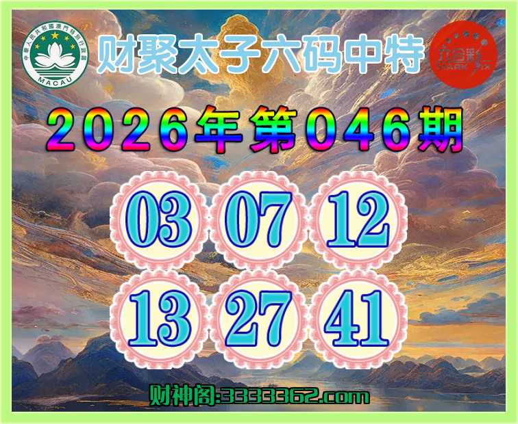 046期:『财聚太子』 🧩六码中特🧩【03.07.12.13.27.41】开:03