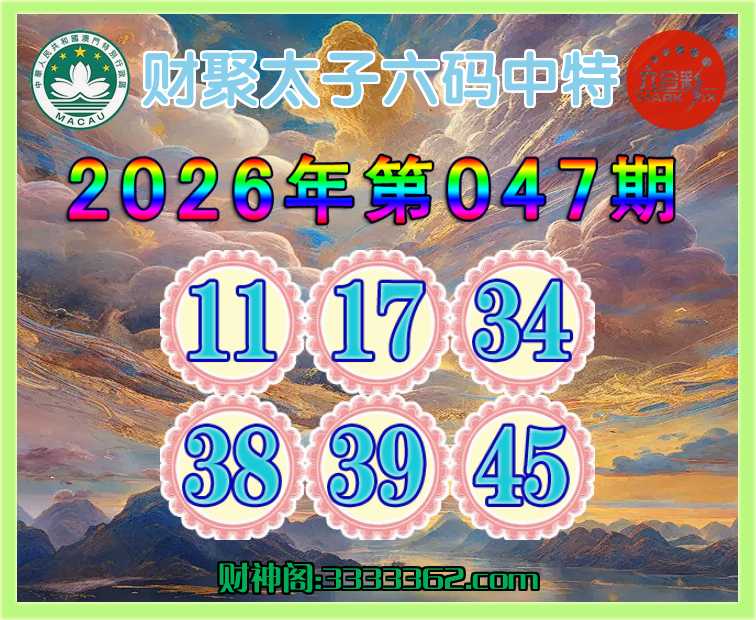 047期:『财聚太子』 🧩六码中特🧩【11.17.34.38.39.45】开:39
