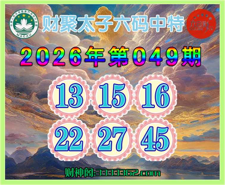 049期:『财聚太子』 🧩六码中特🧩【13.15.16.22.27.45】开:13