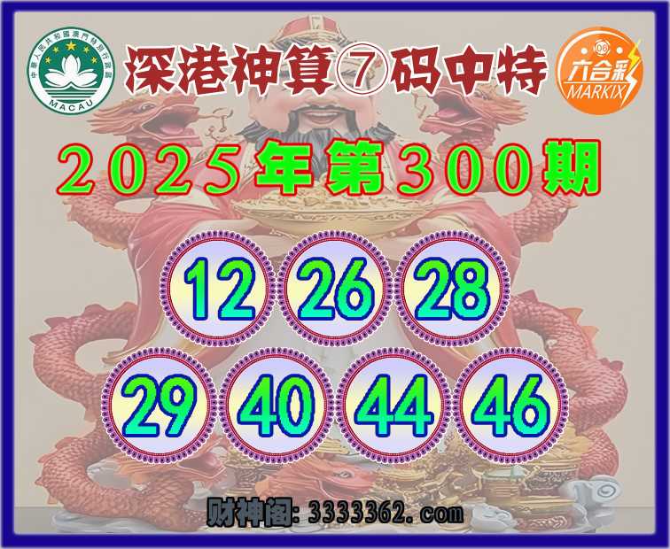300期:《深港神算》 🐁⑦码中特🐁【12.26.28.29.40.44.46】开:40