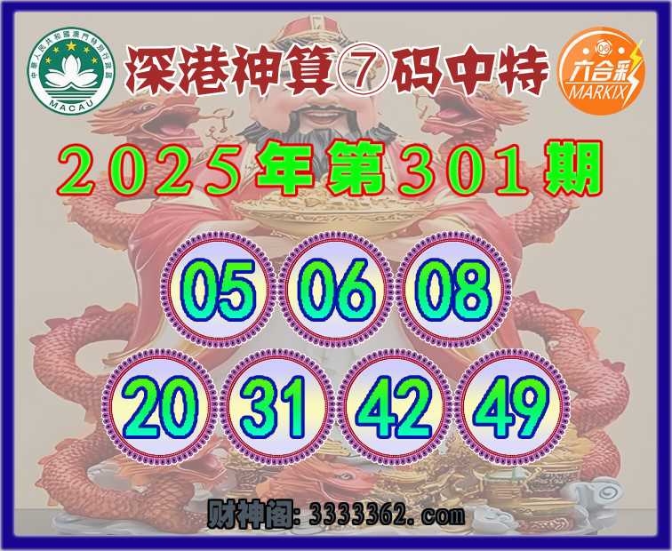 301期:《深港神算》 🐁⑦码中特🐁【05.06.08.20.31.42.49】开:05