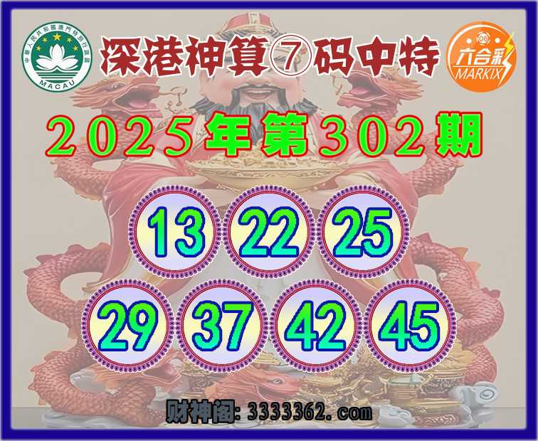 302期:《深港神算》 🐁⑦码中特🐁【13.22.25.29.37.42.45】开:22