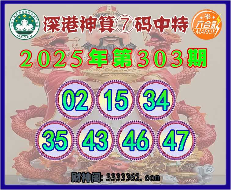 303期:《深港神算》 🐁⑦码中特🐁【02.15.34.35.43.46.47】开:15