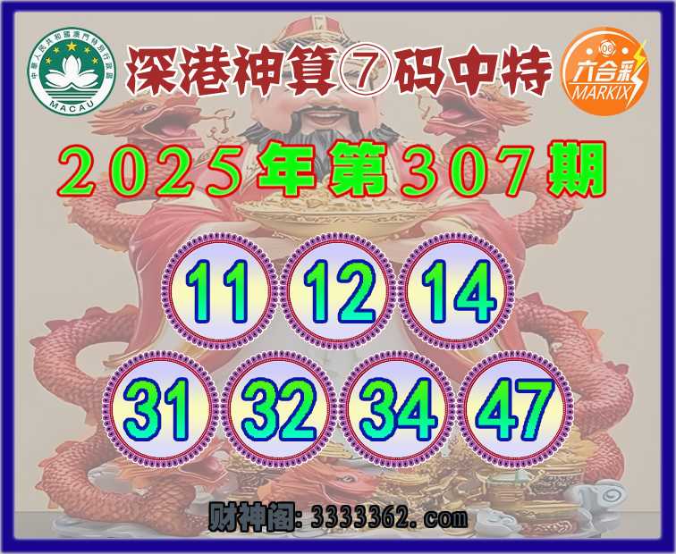 307期:《深港神算》 🐁⑦码中特🐁【11.12.14.31.32.34.47】开:00准