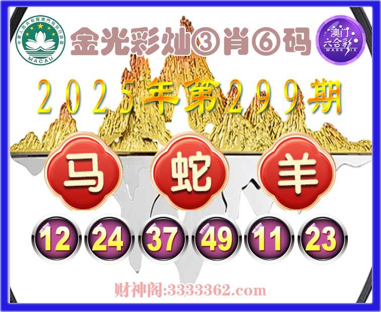 299期:【金光彩灿】 🥫③肖⑥码🥫【马羊】开:蛇49