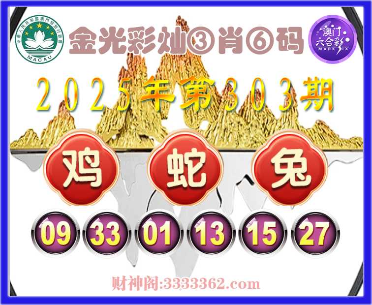 303期:【金光彩灿】 🥫③肖⑥码🥫【鸡蛇】开:兔15