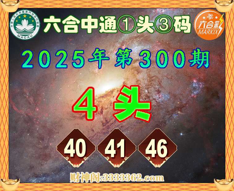 300期:《六合中通》 🧩①头③码🧩【4头主:40.41.46】开:虎40