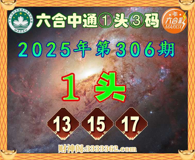 306期:《六合中通》 🧩①头③码🧩【1头主:13.15.17】开:牛17